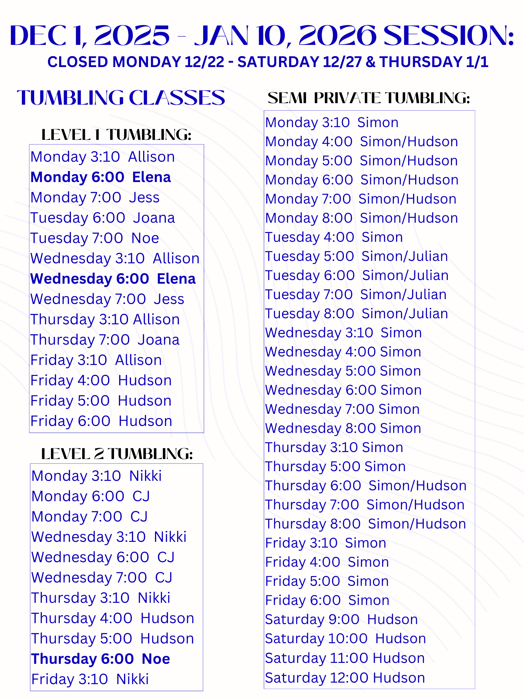 To view the up-to-date schedule and enroll in a class or waitlist please click Sign Up Now below! Sign Up now
